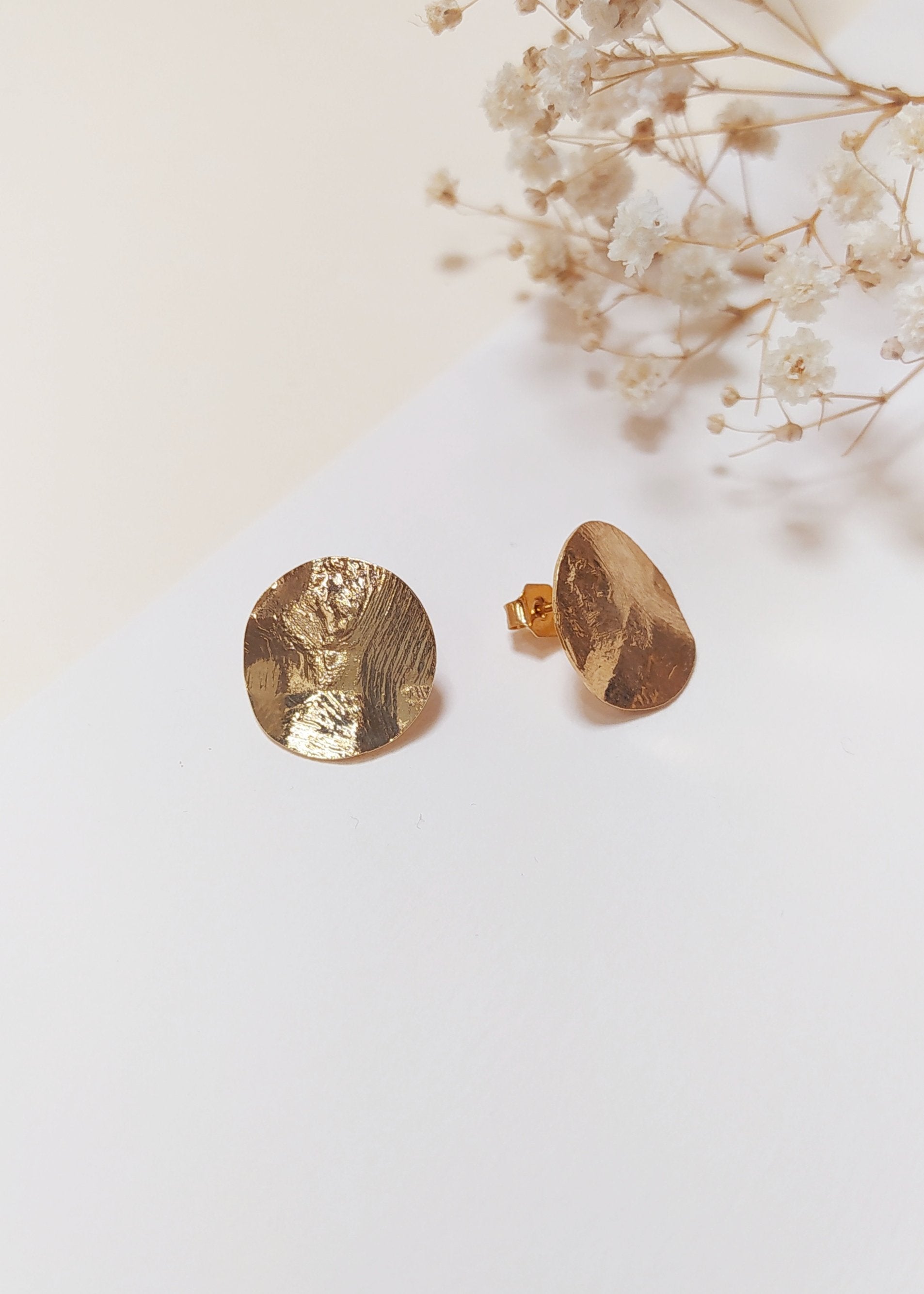 Boucles d'oreilles composées d'un disque martelé et doré... pour sublimer chaque femme avec un bijoux!