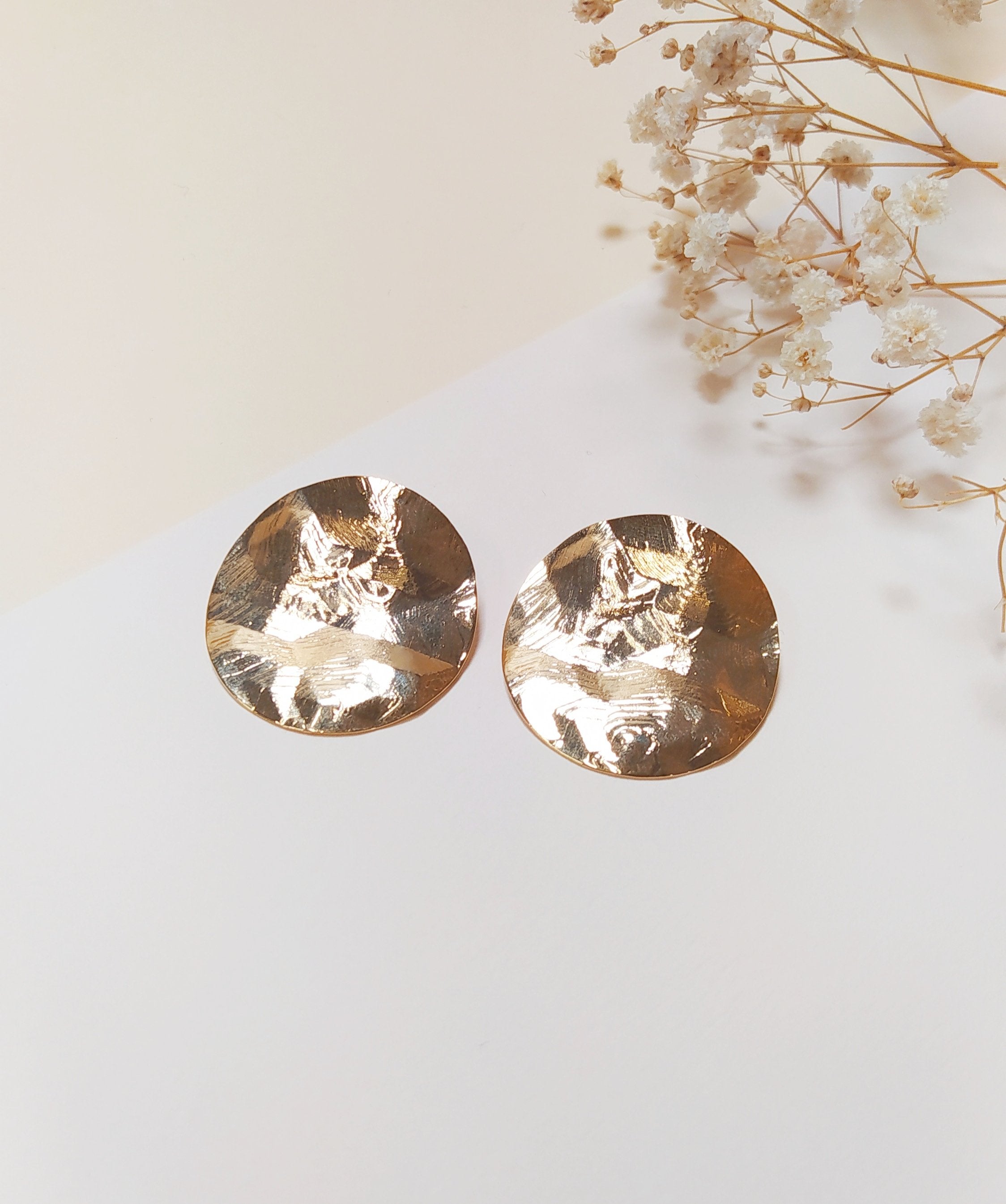 Boucles d'oreilles composées d'un disque martelé et doré... pour sublimer chaque femme avec un bijoux!
