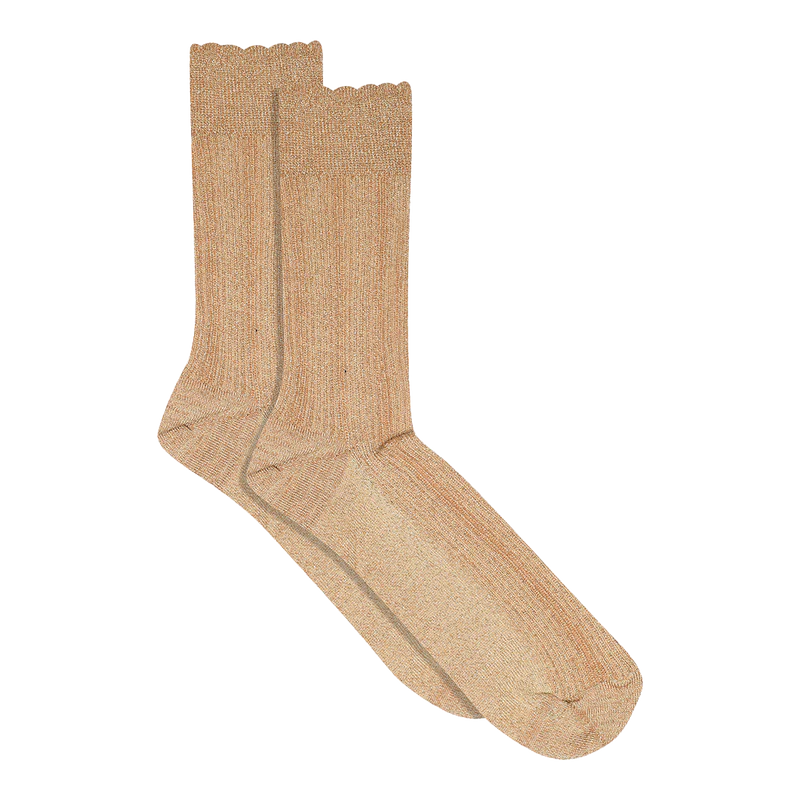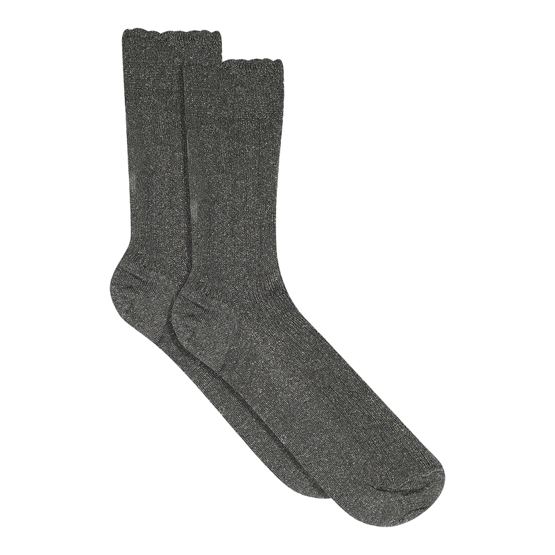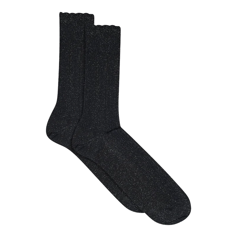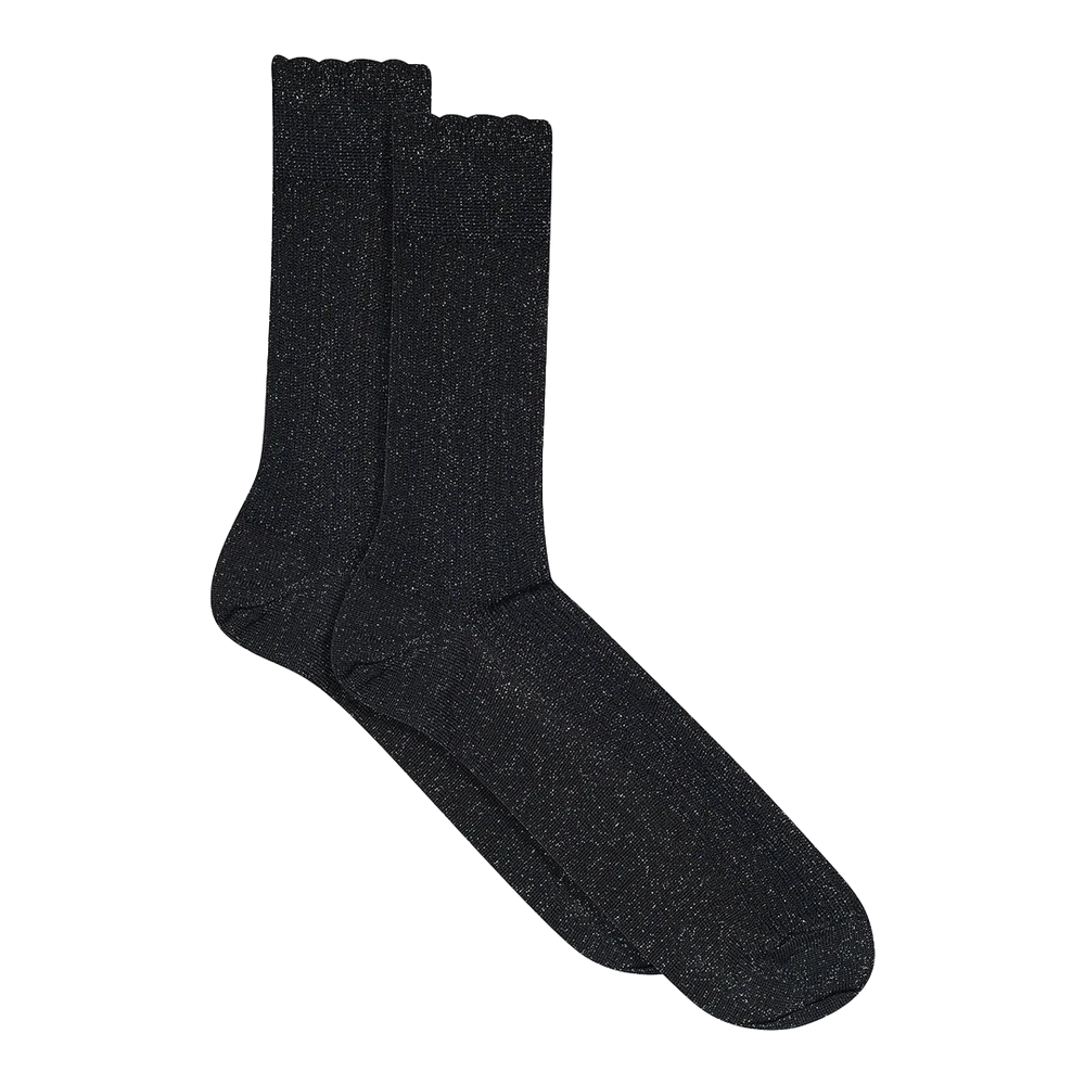Magnifiques chaussettes pailletées en coton de MPwoman. Elles présentent un large bord côtelé et un bord ondulé.
