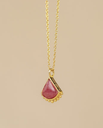 Le collier Zulu séduit par sa douceur et sa modernité. Son pendentif en demi-lune, serti d’une pierre rosée délicate, évoque la féminité et l’équilibre. Chaque détail doré, finement perlé, sublime la lumière et apporte une touche solaire à ce bijou tout en subtilité. Inspiré des formes organiques, il incarne la beauté naturelle et la sérénité d’un style à la fois tendre et affirmé.