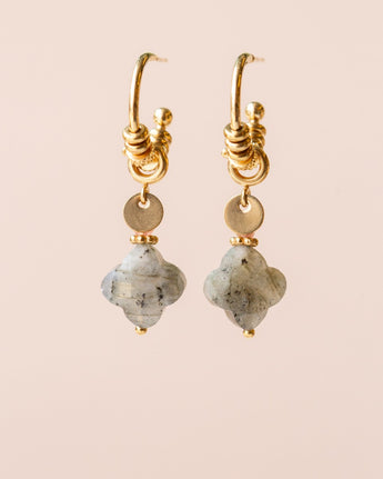 Créoles avec une trèfle remplie des pierres précieuses mixtes