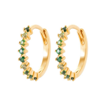 Nerina sublime la mini créole avec une succession de pierres aux nuances vertes, créant un dégradé lumineux et vibrant. Élégantes et pleines de fraîcheur, elles apportent une touche colorée et sophistiquée à chaque tenue.