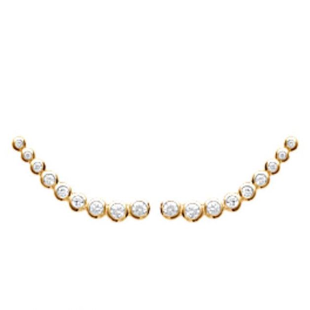 Barrettes d’oreilles aux pierres délicatement serties en ligne courbe, épousant naturellement le contour du lobe. Lumineuses et raffinées, elles habillent l’oreille avec subtilité et apportent une élégance moderne tout en finesse.