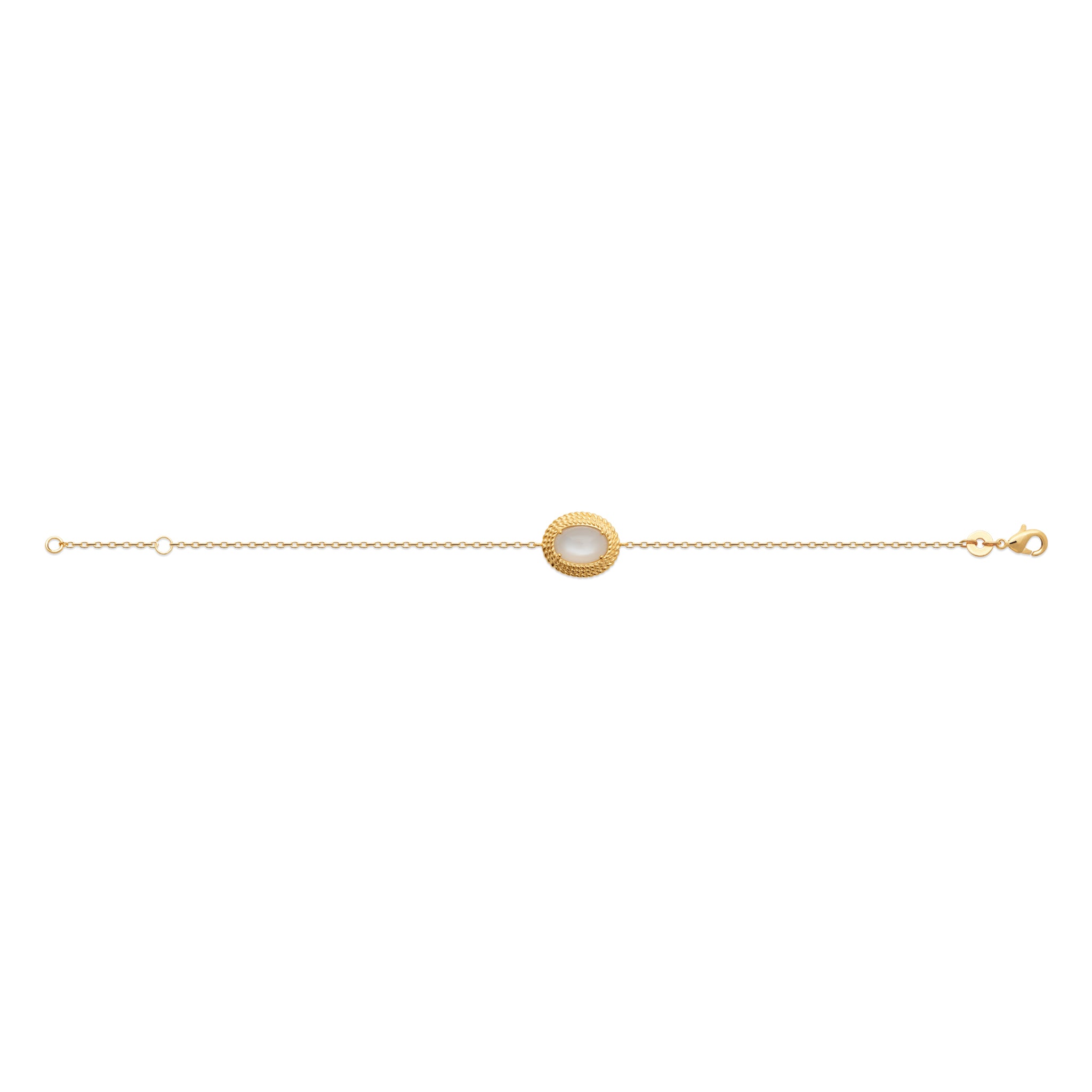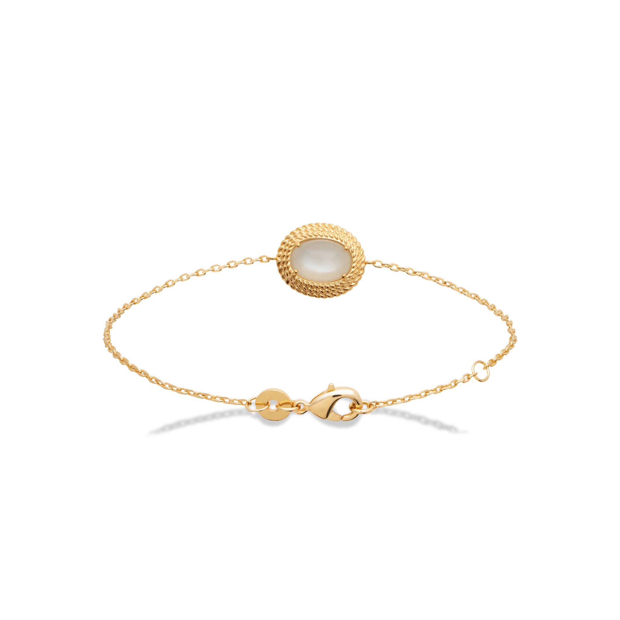 Elyssia met à l’honneur la pierre de lune et ses reflets opalescents aux nuances délicates. Fine et lumineuse, elle enveloppe le poignet d’une élégance douce et naturelle, subtilement précieuse au quotidien.