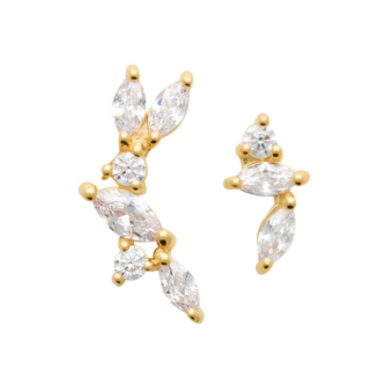 Alix joue avec l’asymétrie et la lumière, mêlant des pierres aux tailles élancées dans une composition délicate et aérienne. Posées sur l’oreille, elles créent un éclat subtil et contemporain qui attire le regard sans jamais en faire trop.