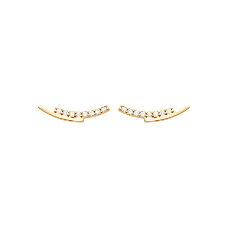 Siena dessine une ligne fine et légèrement courbée, délicatement pavée d’éclats lumineux. Posées le long du lobe, elles soulignent l’oreille avec une brillance discrète et moderne, comme un sourire doré qui capte la lumière à chaque mouvement.