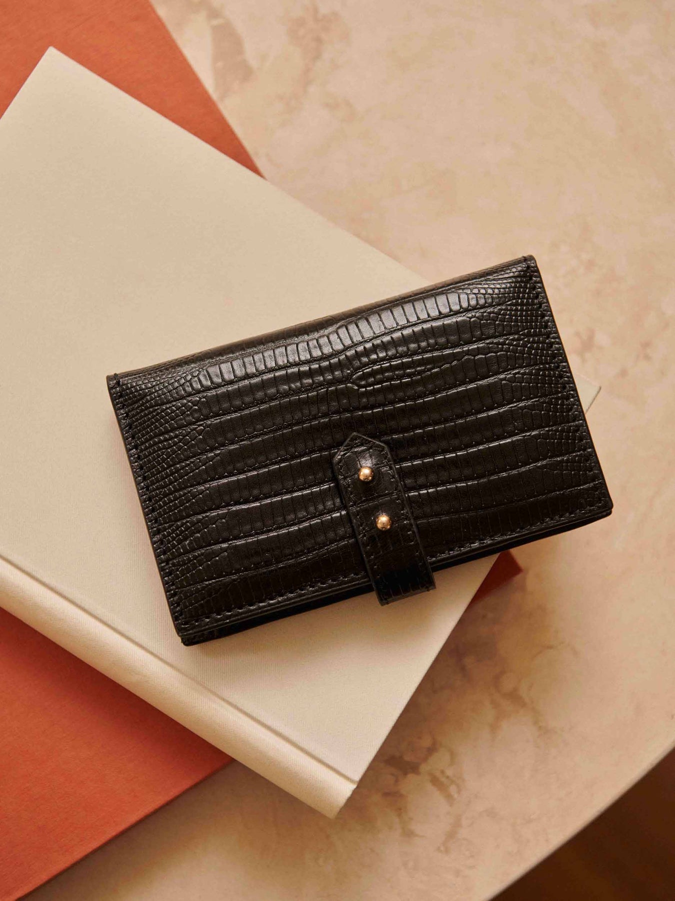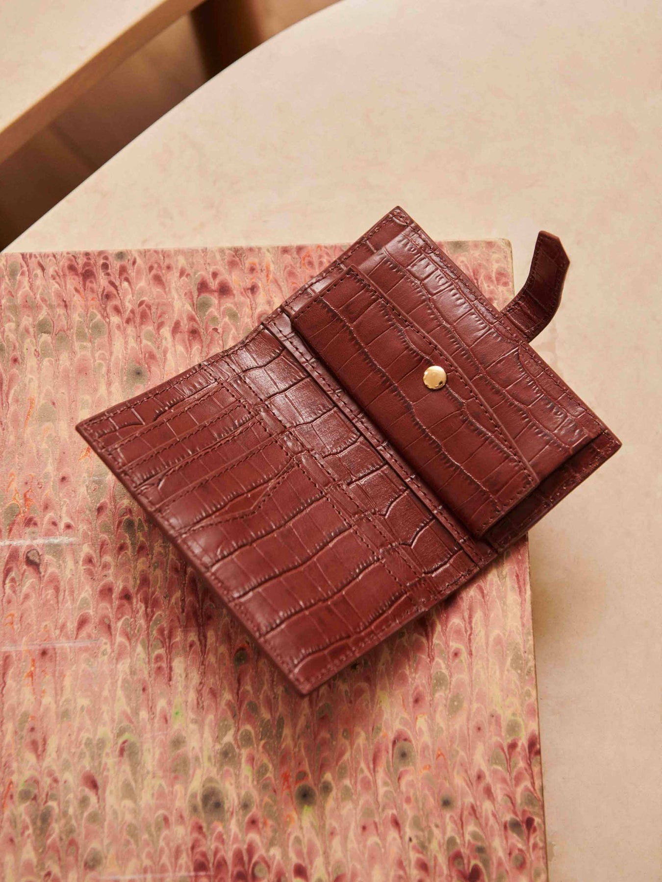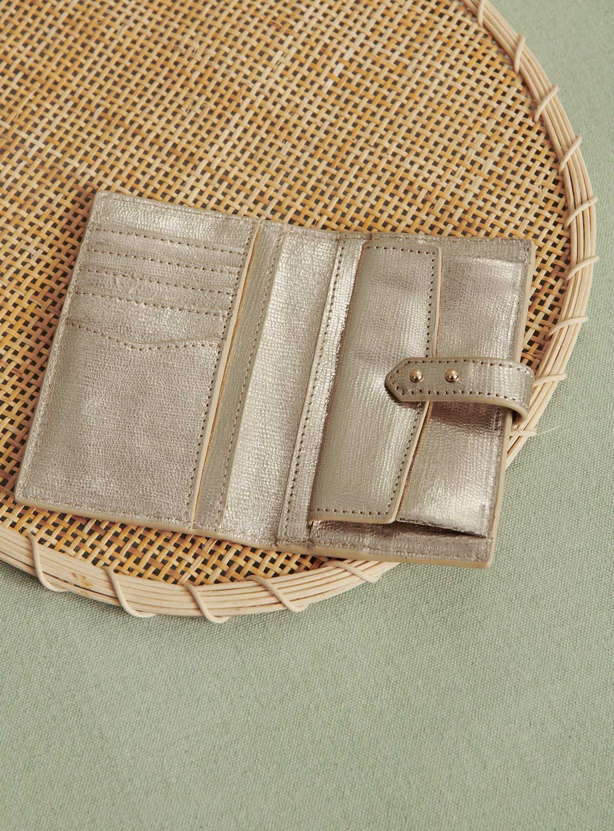 Petit portefeuilles au format compact. Compartiment pour les pièces avec rabat et fermeture bouton clips. Ainsi que d'autres compartiments pour les cartes.