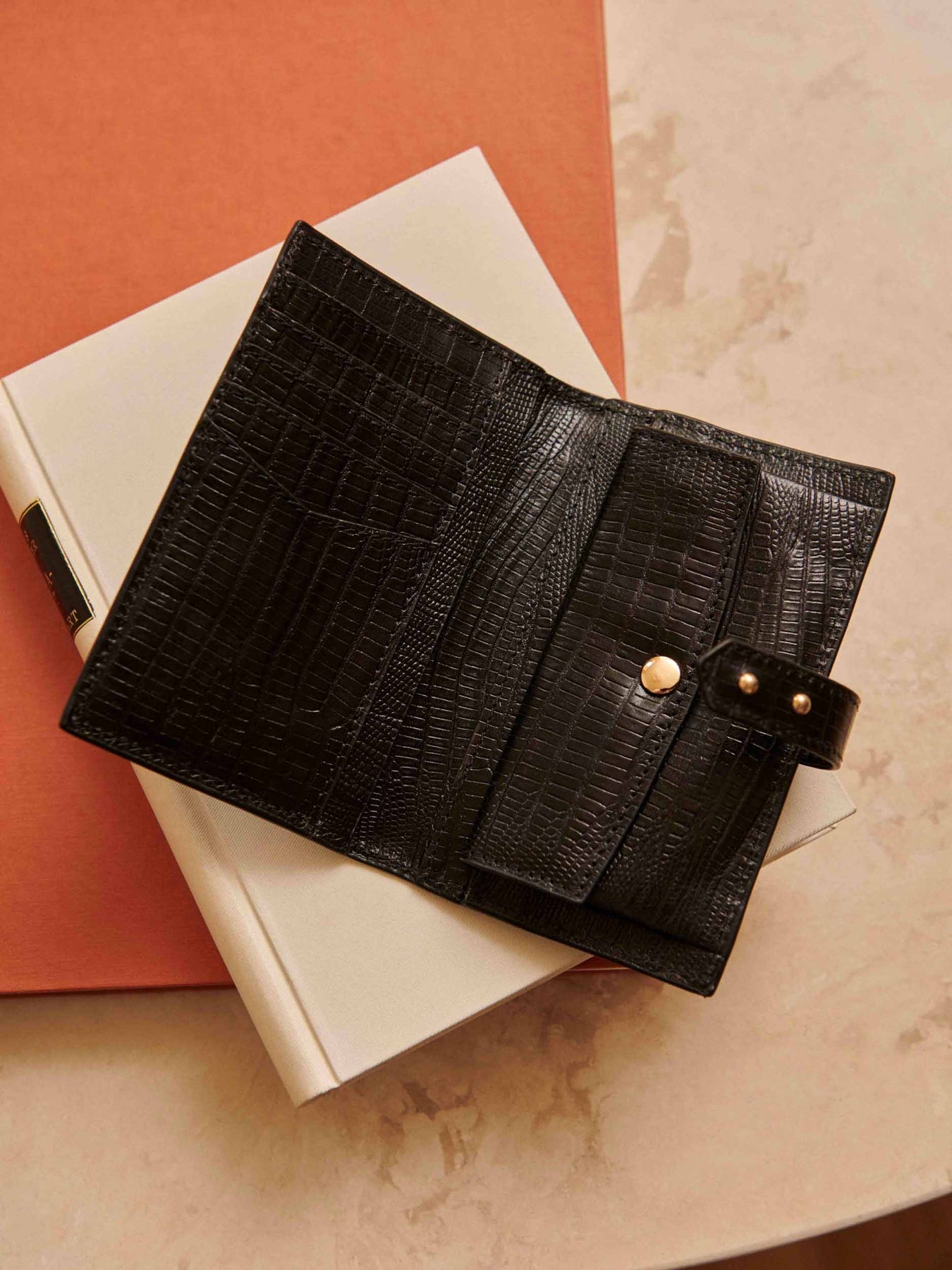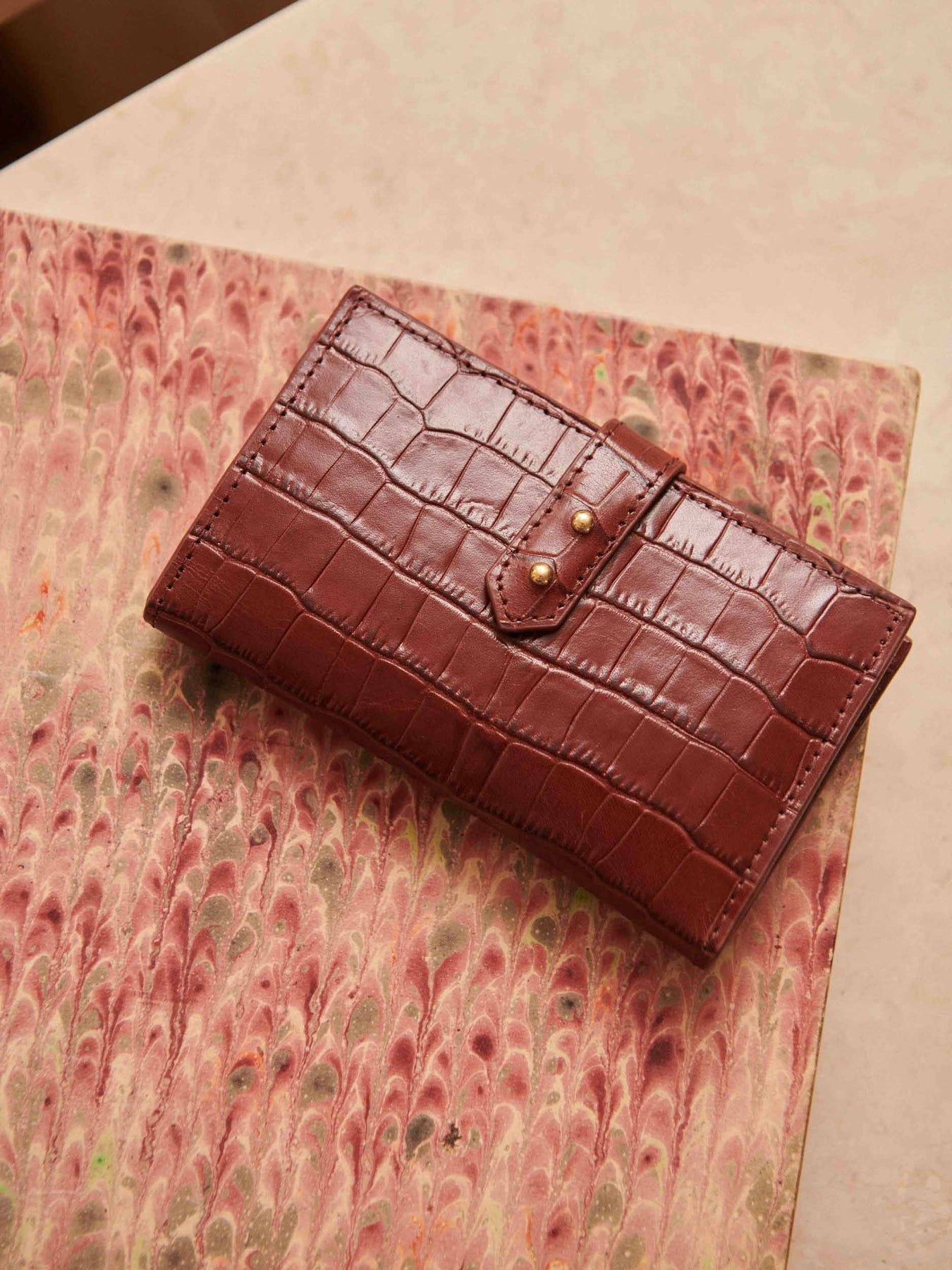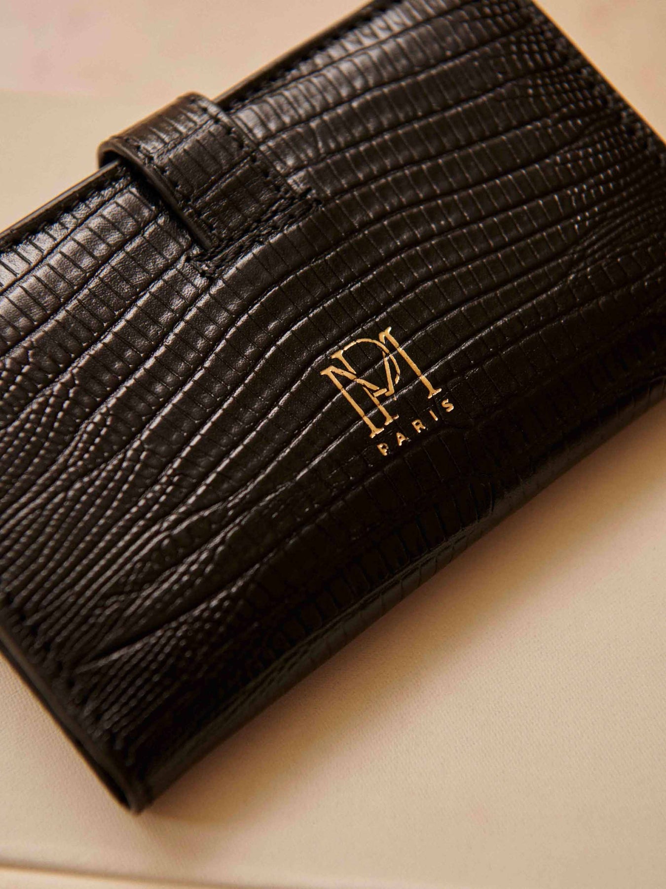 Petit portefeuilles au format compact. Compartiment pour les pièces avec rabat et fermeture bouton clips. Ainsi que d'autres compartiments pour les cartes.