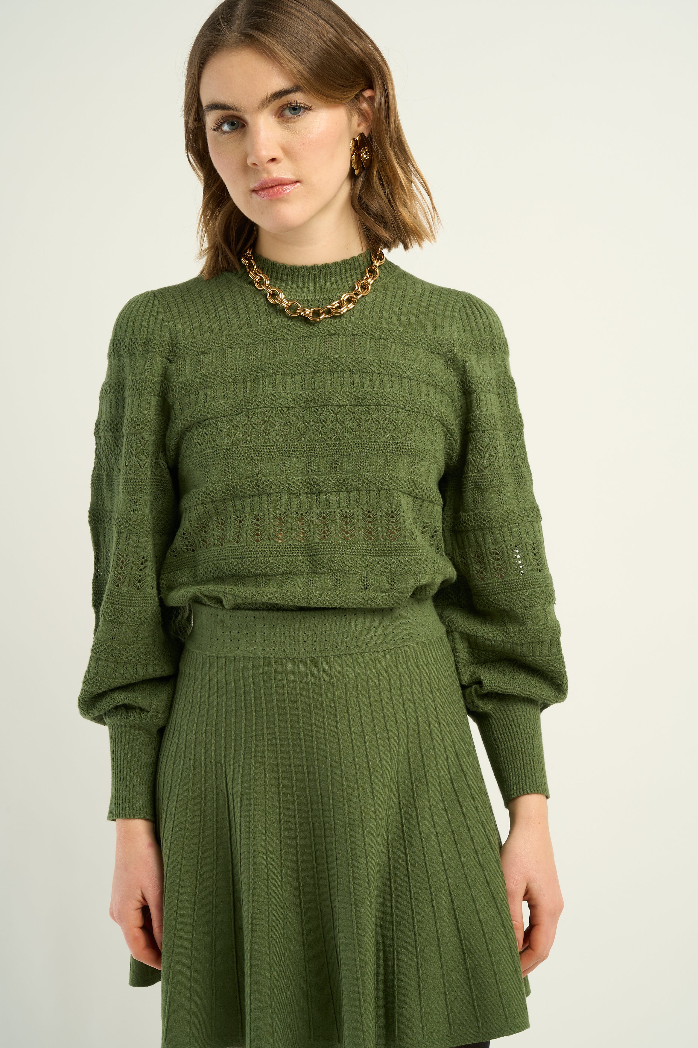 Notre iconique pull Milet est parfait pour la saison. Léger et féminin grâce à ses détails de maille ajourée, il se marie parfaitement avec un jean ou peut être stylisé en mix and match avec notre jupe Java. Une pièce incontournable pour un look confortable.