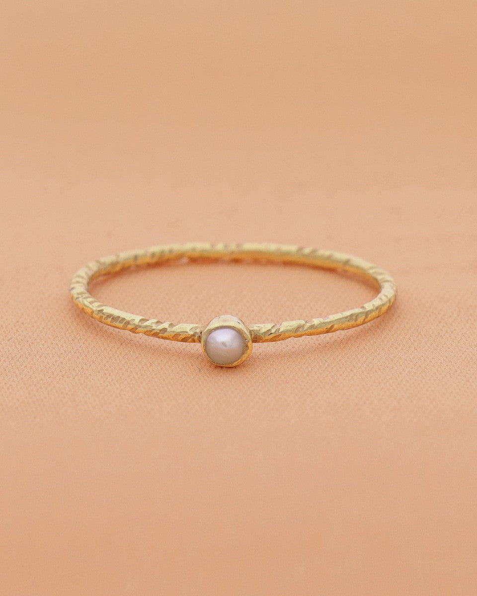 Bague en argent plaqué or, sertie d’un avec perle ronde de 2 mm.