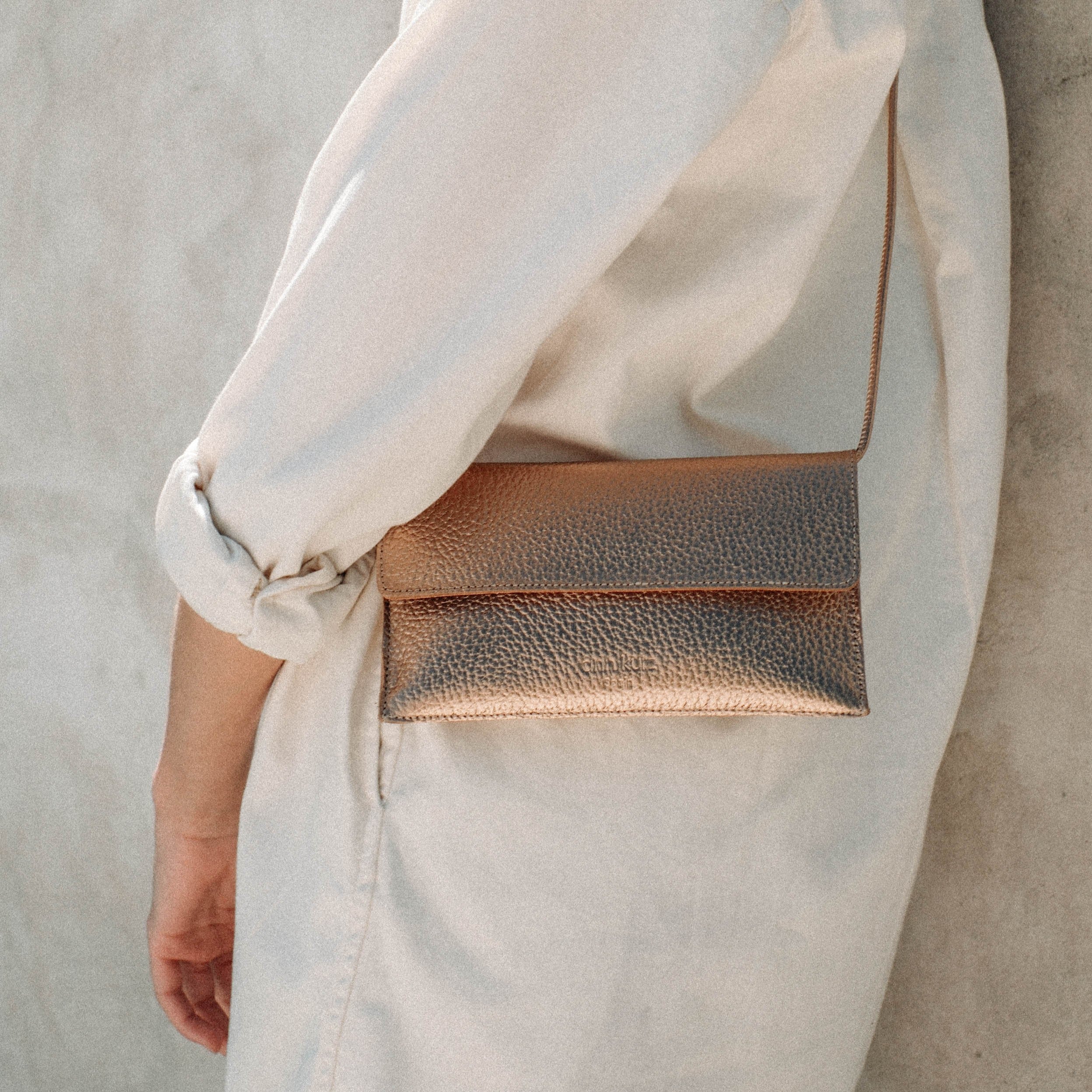 Un design épuré et minimaliste. Une touche de couleur pour vos journées. Idéal pour votre portable et vos petites affaires. Il est doté d'une bandoulière réglable et d'une petite poche avec fermeture éclair à l'intérieur.