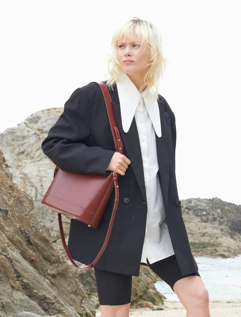 Le sac Marlon, en cuir recyclé, se décline désormais en deux coloris intemporels : noir et cognac. Pratique et chic, il allie résistance, imperméabilité et durabilité. Sa forme fonctionnelle, avec poches intérieures et deux lanières, en fait l'allié idéal pour le quotidien. Son design épuré et ses couleurs classiques s’adaptent à toutes les saisons.