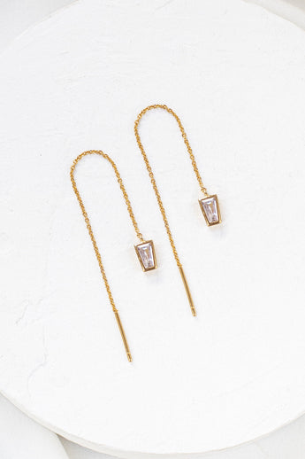 Boucles chaîne lenox dorées: Boucles d'oreilles délicates, composées de deux éléments sertis de zircone, suspendus à une chaîne délicate.