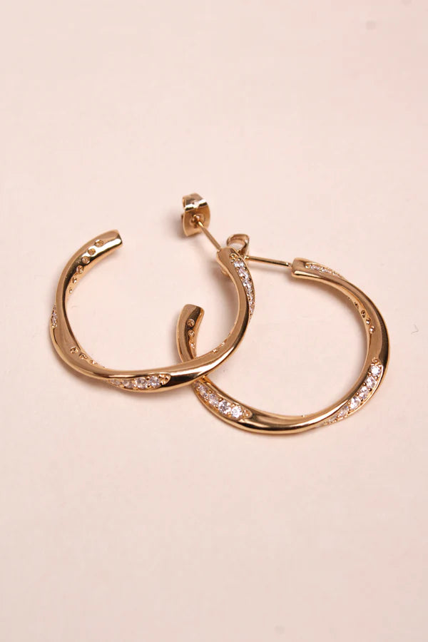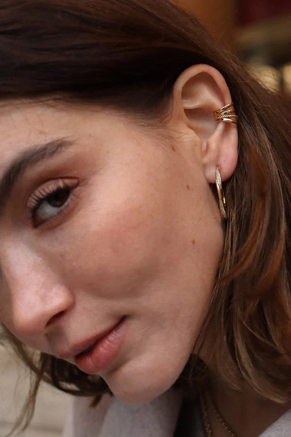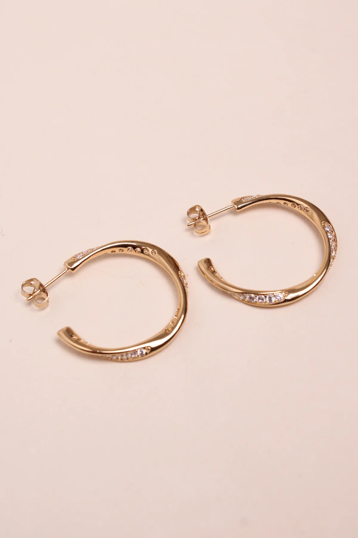 Créoles en plaqué or 3 microns. Ces boucles sont incrustées de petits zircons, une touche de brillance discrète.