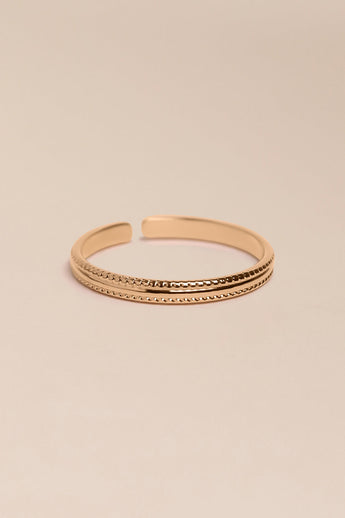 Fine et discrète, la bague Prima sera parfait à accumuler. Réglable et en plaqué or 3 microns.