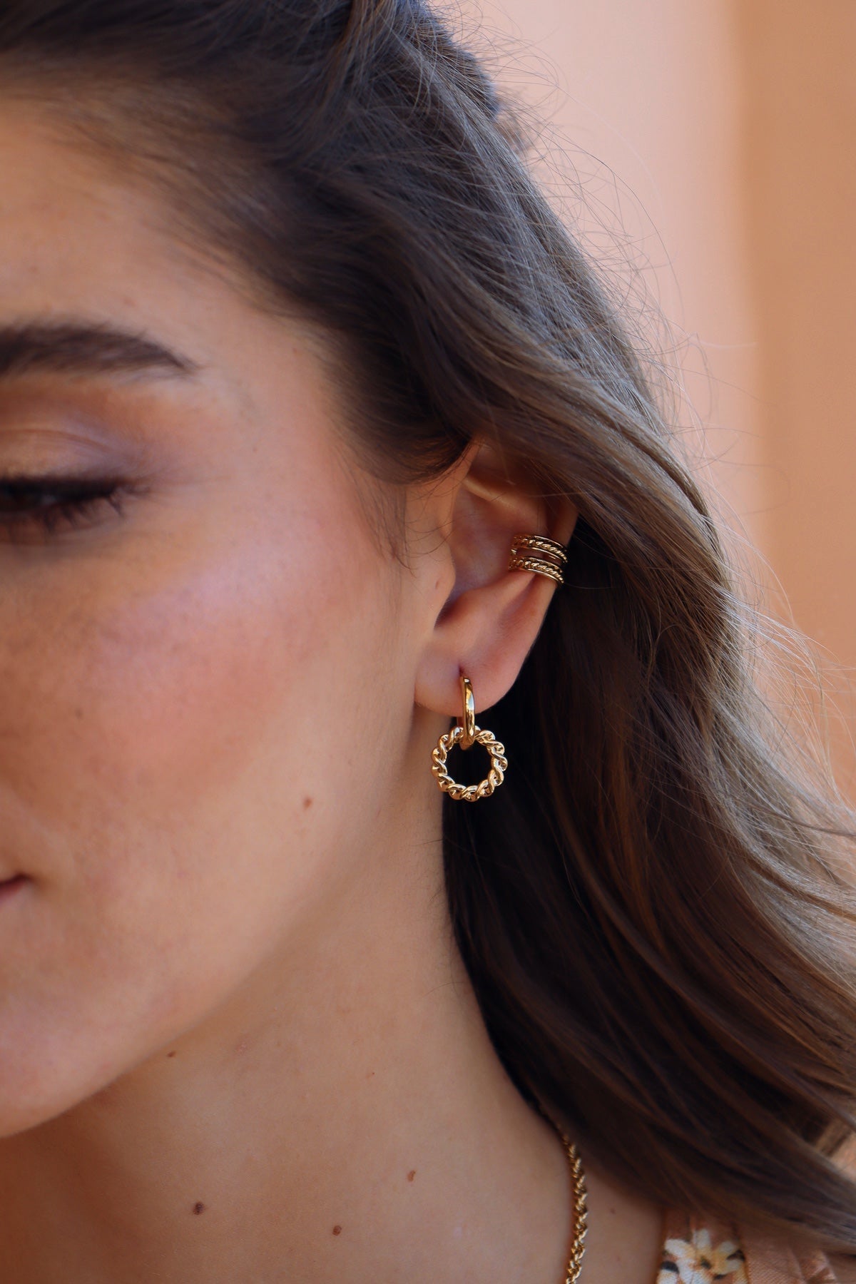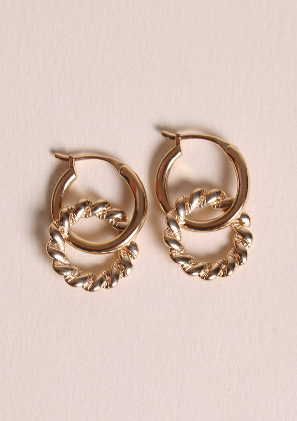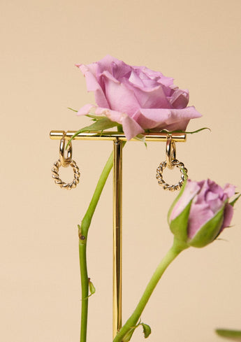 Amusez-vous avec les Diane ! Une paire ultra légère en 2 parties, avec un anneau lisse et un anneau tressé, en plaqué or 3 microns.