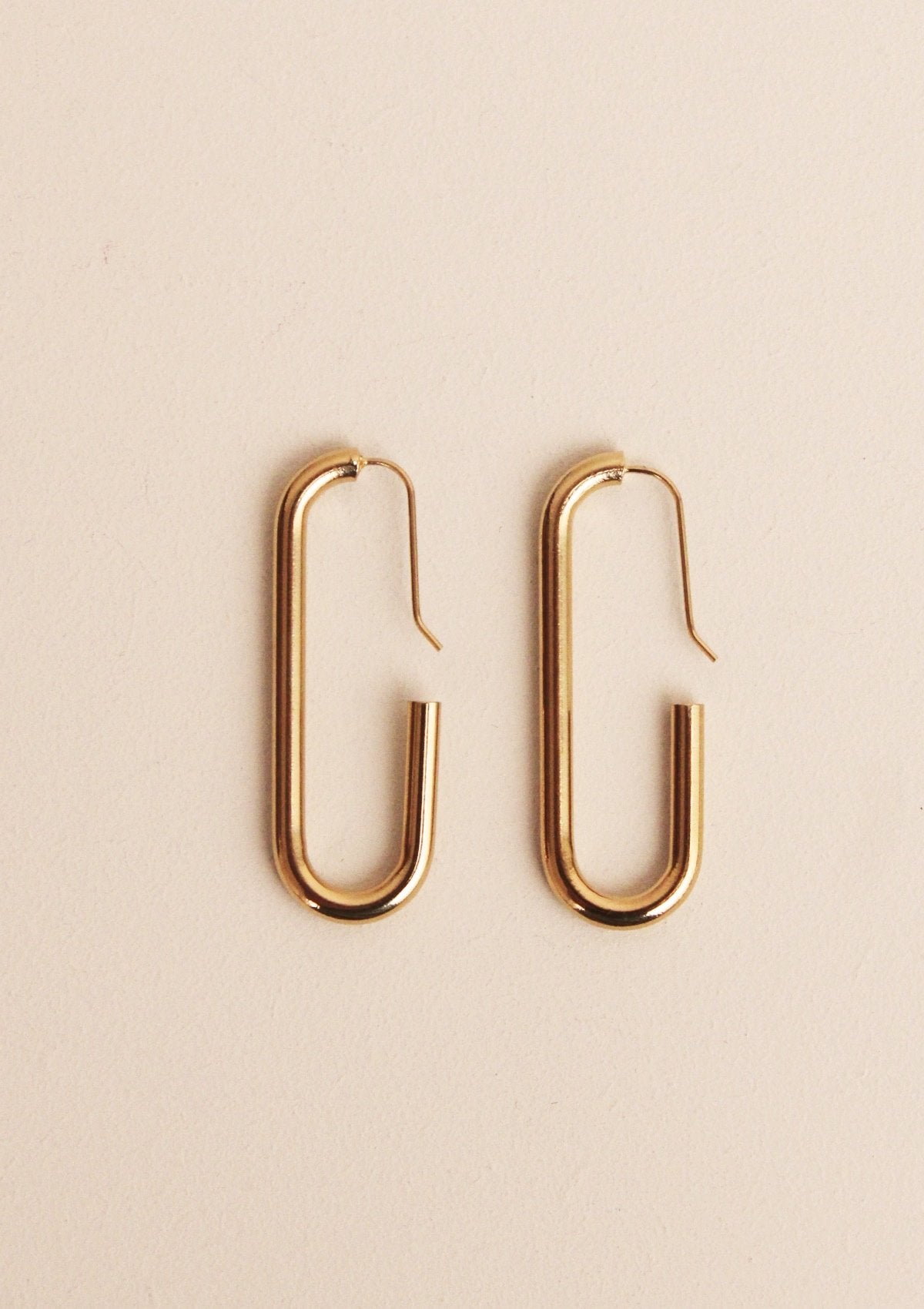 Boucles d'oreilles Suzi dorées : boucles d'oreilles pendantes à finition lisse. Comme une épingle ultra légère, parfaites pour tous les jours.