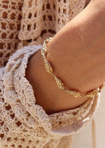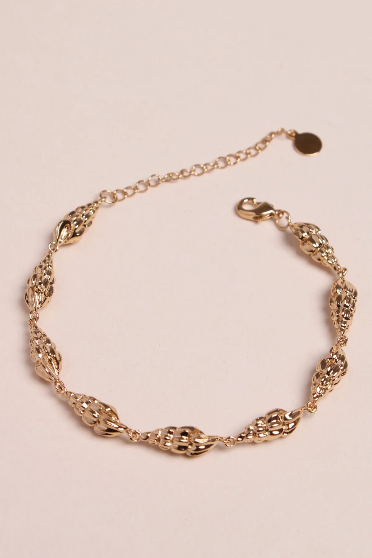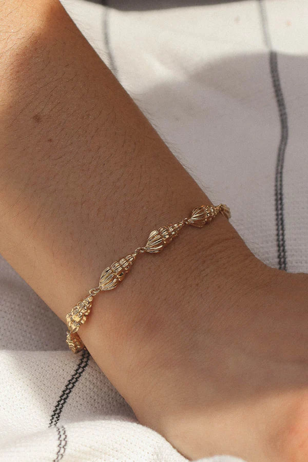 Bracelet en plaqué or 3 microns composé de coquillages. Un de nos préférés de cette collection, élégant et délicat, tout ce qu'on aime.