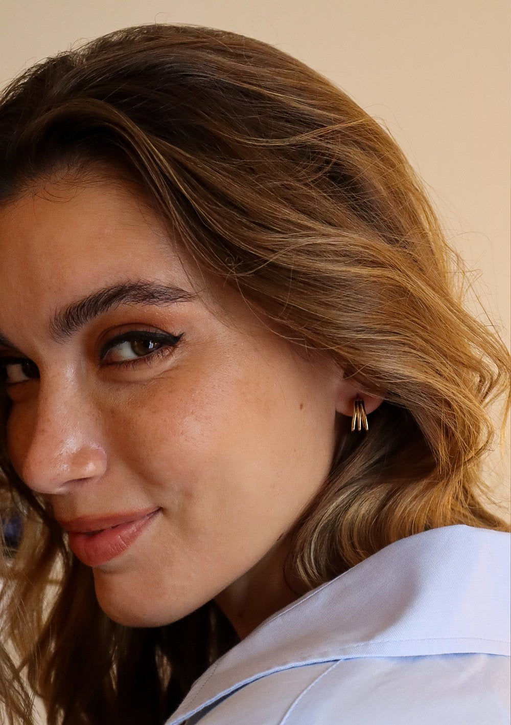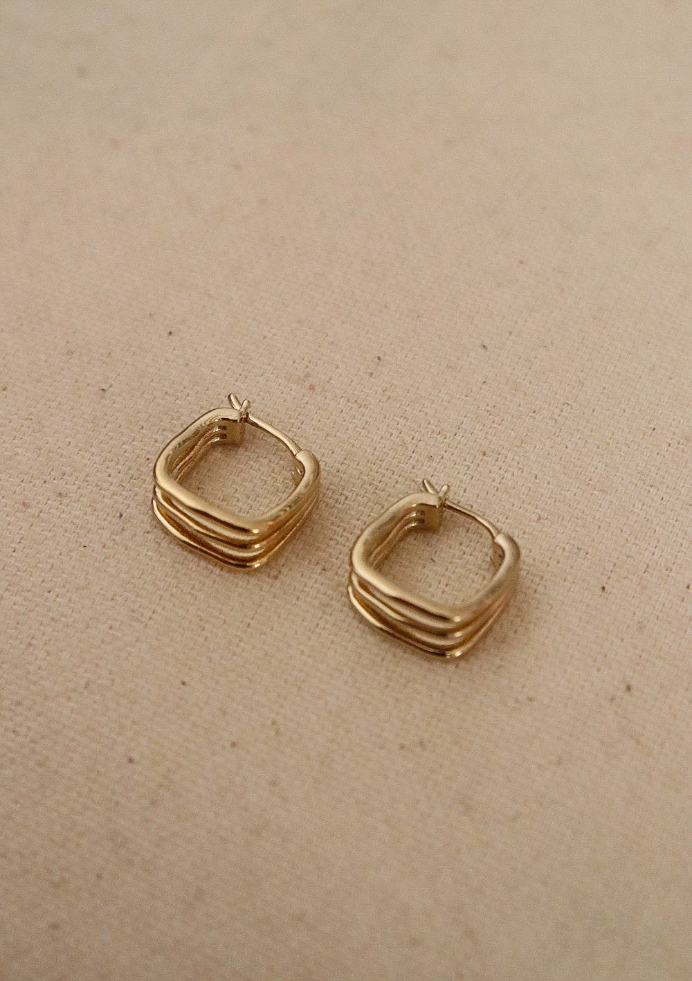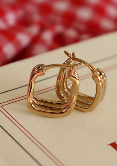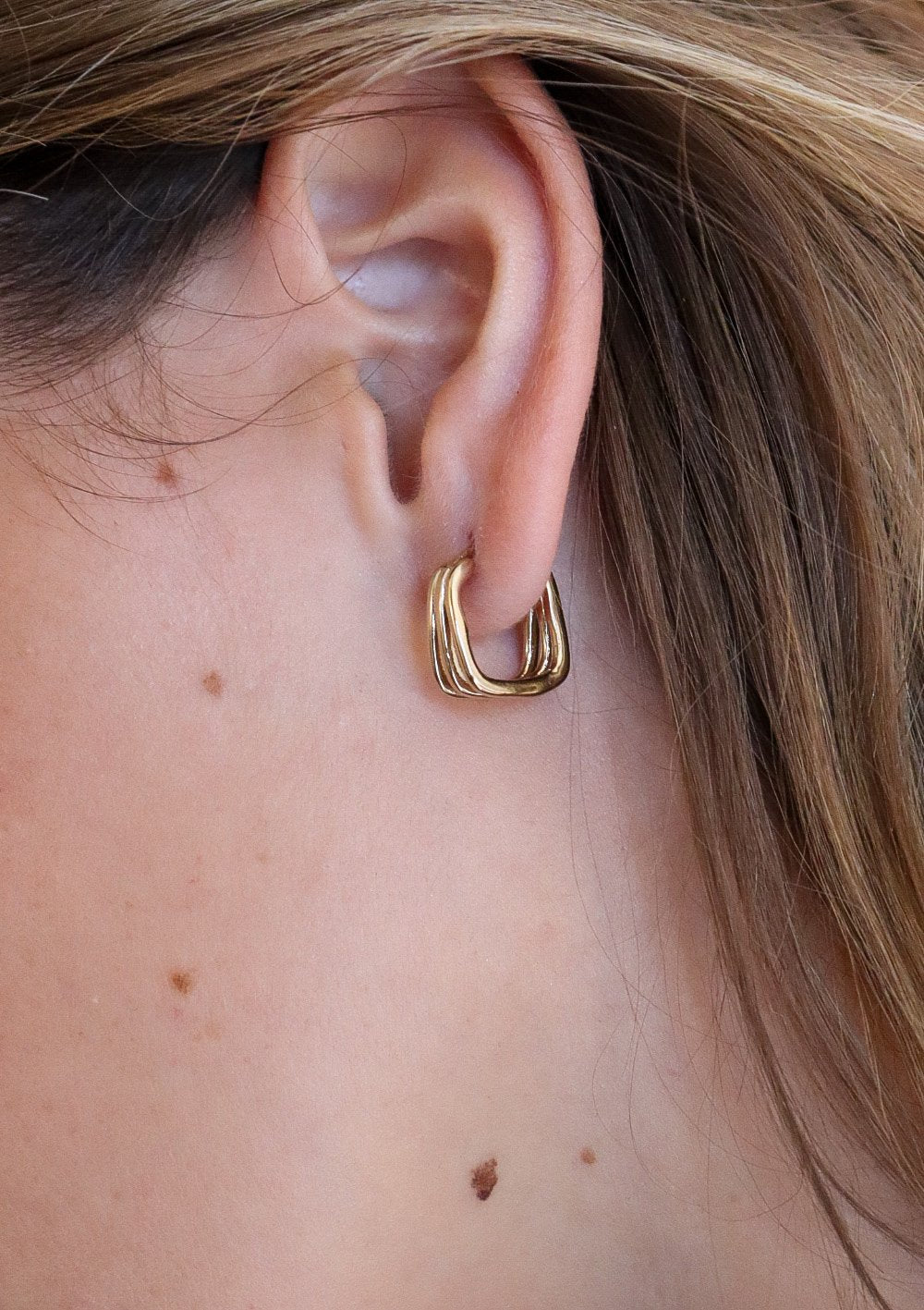 Petites créoles discrètes de forme carrée se dissociant en 3 éléments.