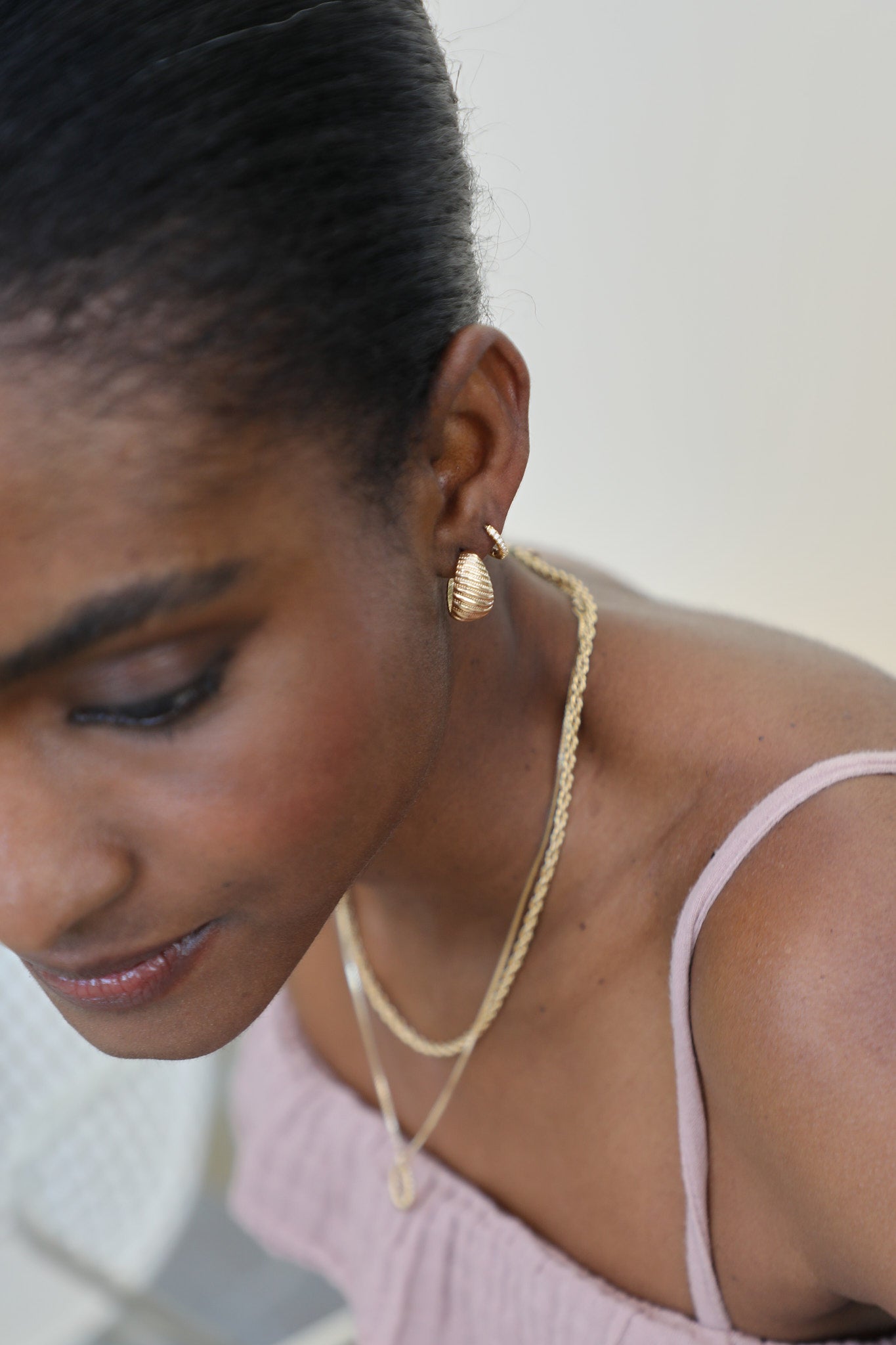 Sur la photo portée,e le mannequin porte également les mini créoles billes.
