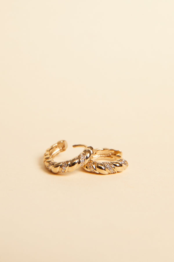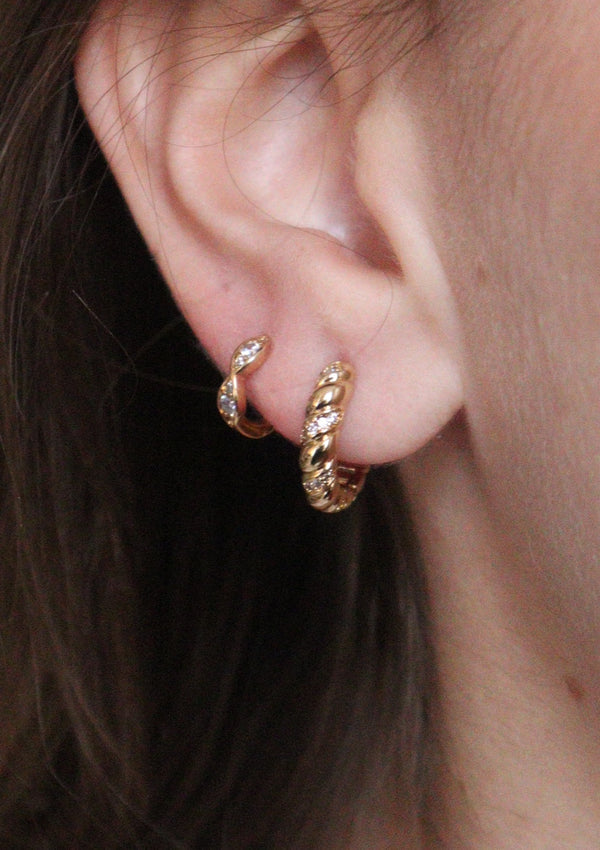 Mini créoles tressées donnant un effet brillant à la boucle avec des détails zircons.