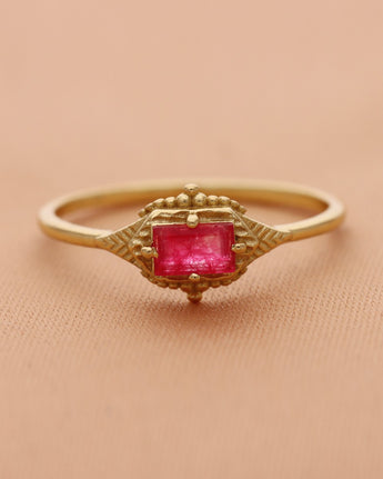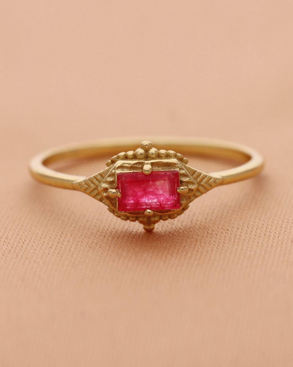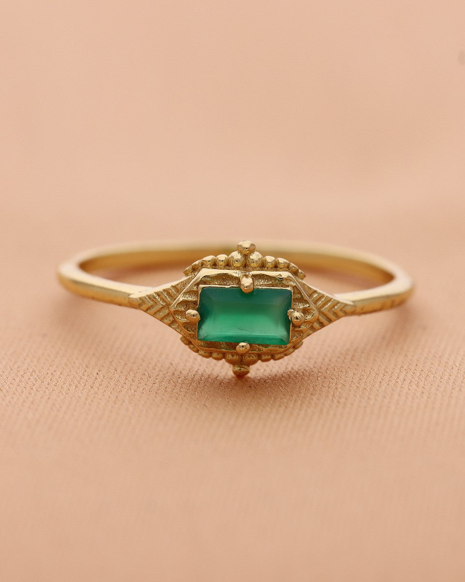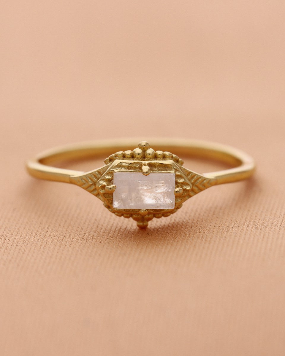 La bague Bégonia charme par son allure vintage et son éclat envoûtant. Sa pierre lumineuse, sertie sur une monture finement travaillée, évoque la délicatesse et la féminité. Un bijou au charme intemporel, parfait pour sublimer chaque geste avec élégance.