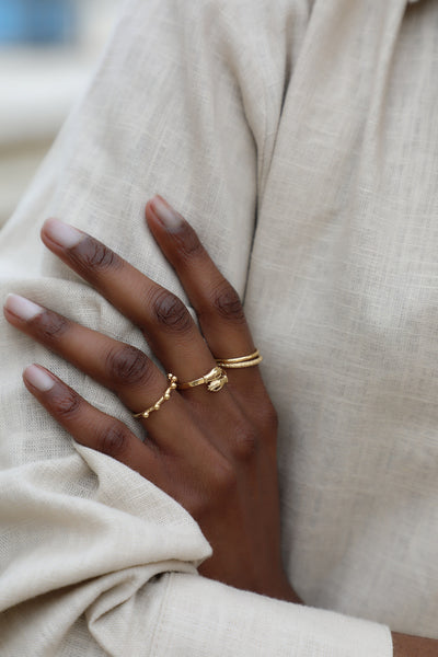 Lorsque la simplicité et la finesse s'allient ? Nous vous présentons la Luka, bague réglable faite pour ne plus vous quitter ! En plaqué or 3 microns.
