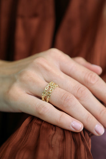 Vous aviez adoré notre bague Marcie et son motif chaine, nous la déclinons ici en format XL. Notre Vera est le modèle parfait à offrir ! Nous savons déjà qu'elle deviendra incontournable.