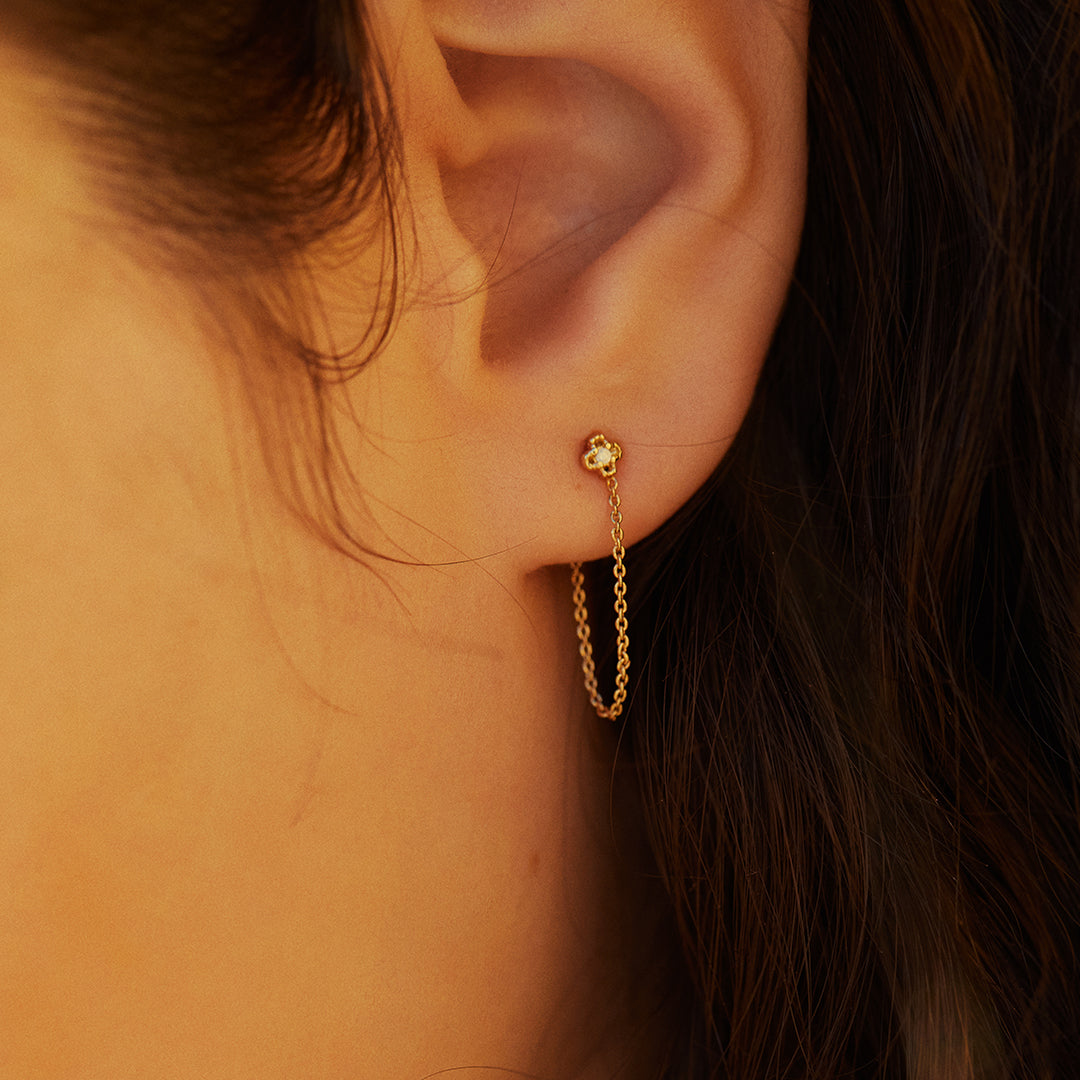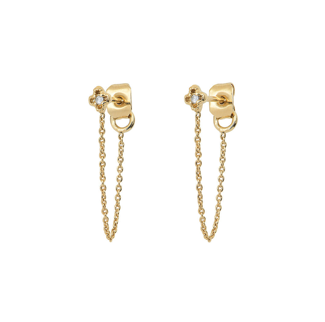 Charmante boucles d'oreilles chaîne dorées à l'or fin, sertie d'un strass Swarovski, à offrir ou pour se faire plaisir !