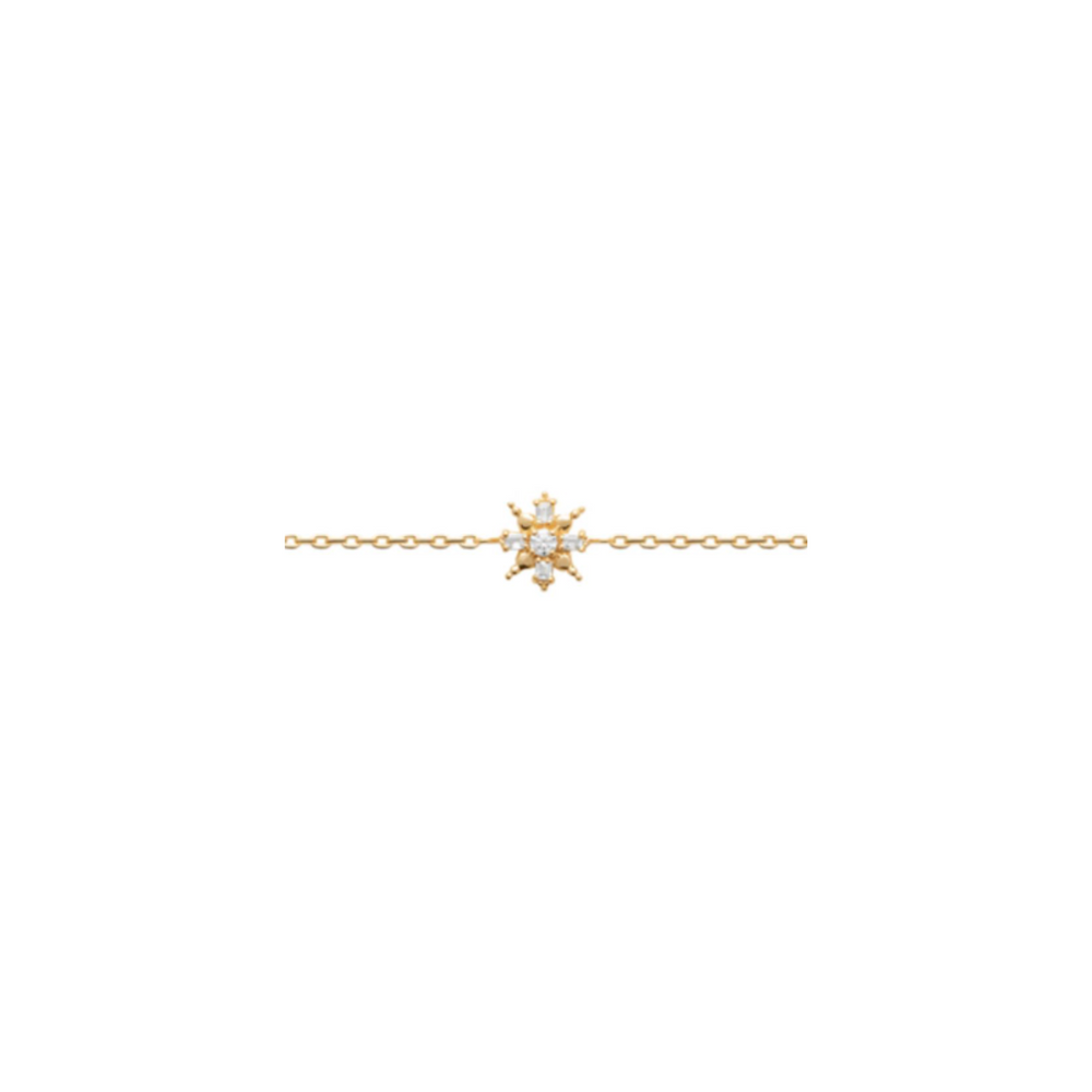 Le bracelet Elsa incarne la finesse et l’éclat avec son délicat soleil serti de cristaux étincelants. Léger et raffiné, il illumine le poignet d’une lueur subtile et élégante. Une pièce intemporelle qui sublime chaque geste d’une touche de lumière.