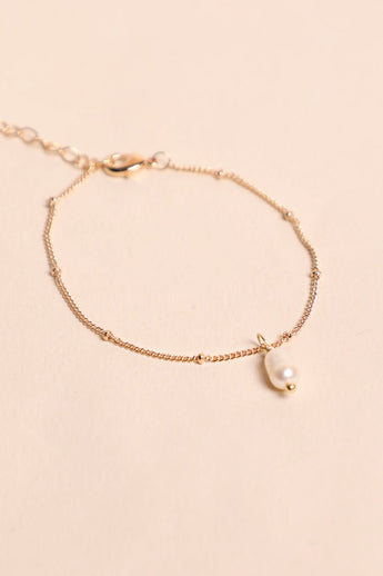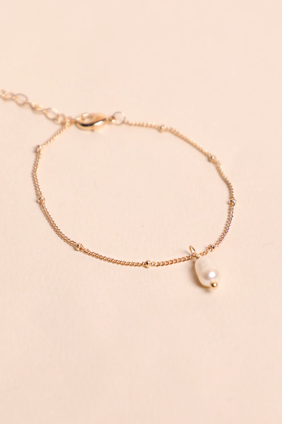 Notre Toscana est composé d'une chaîne forçat dorée avec un détail bille et d'un joli élément en perle d'eau douce blanche.
