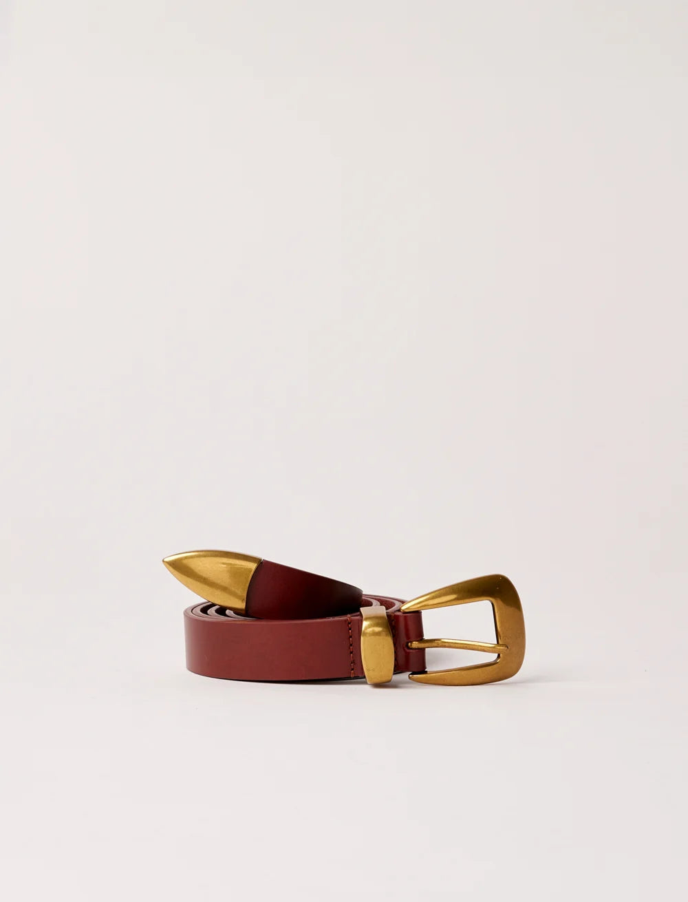 La boucle en laiton doré vieilli est un détail qui distingue la ceinture Thelma des autres ceintures. Elle ajoute une touche de vintage et d'élégance, tout en restant discrète.