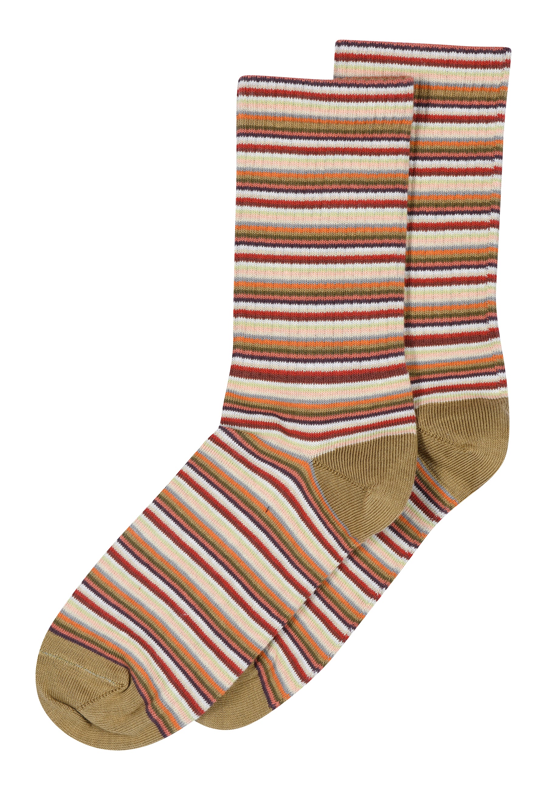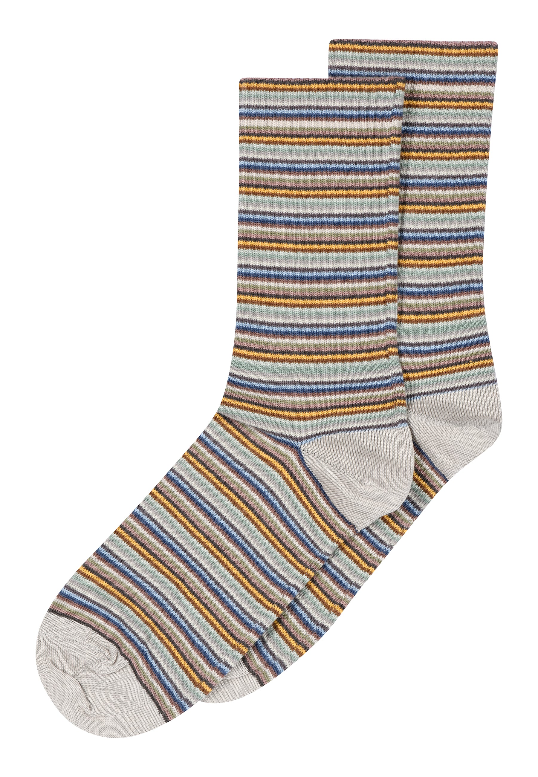 Les chaussettes Ada sont fabriquées à partir d'un tricot côtelé en mélange de coton doux avec un motif à rayures colorées.