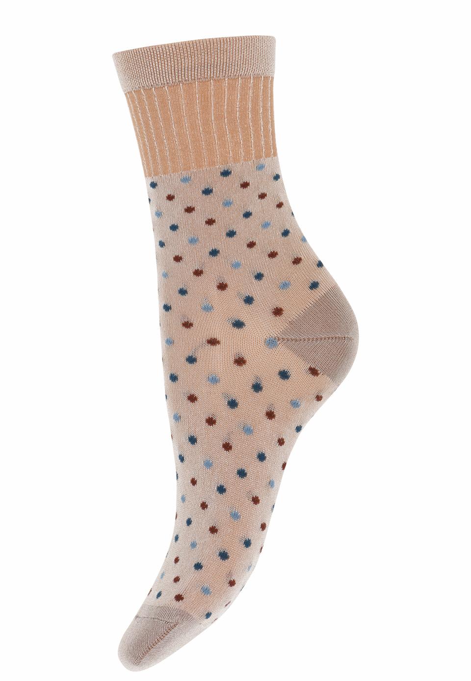 Recouvertes d'un motif à pois coloré, les socquettes Harmony sont tricotées avec un fil super doux et finies avec une bande de cheville à rayures.
