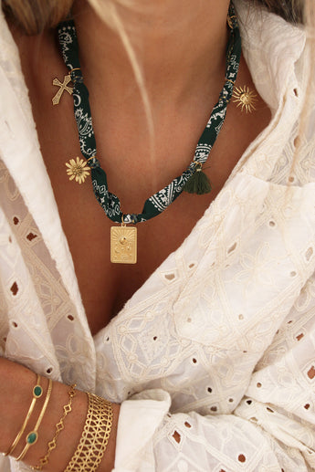 Sur la photo première photo portée, la mannequin porte également le jonc Elyne, la manchette Augustine et le bracelet Cléophina