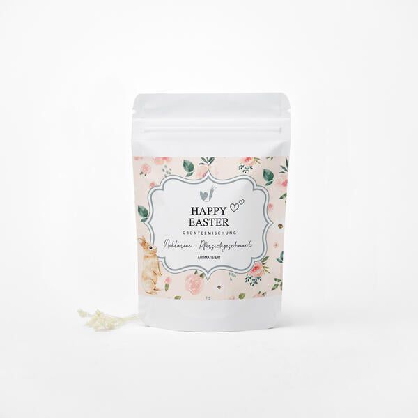 Ingrédients : Thé vert (51%), morceaux de pomme, morceaux de pêche (pêche, farine de riz), arôme, fleurs en sucre (sucre, farine de riz, huile de riz, amidon de pomme de terre, arôme, concentré de jus de betterave rouge, colorants : curcumine, riboflavine, carmin véritable, indigotine), morceaux de pêche lyophilisés (pêche, sucre), poudre de miel de Manuka (miel de Manuka, maltodextrine), pétales de rose, immortelle.
