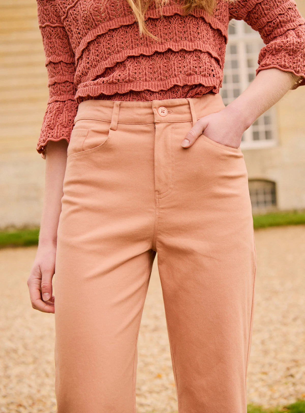 Pio revisite le pantalon flare avec modernité. Sa coupe élance la jambe tandis que sa couleur douce apporte une touche féminine et résolument printanière.