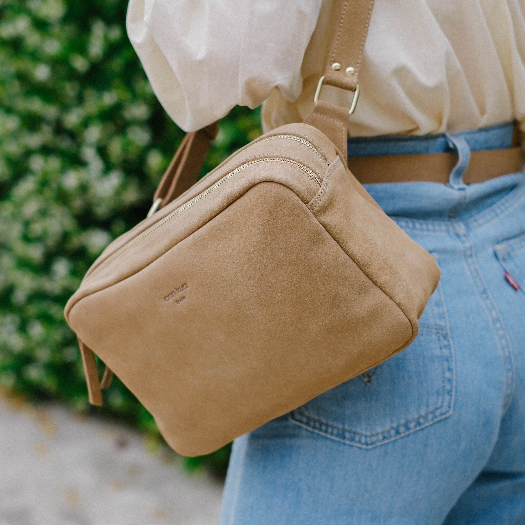 Sa forme carrée est intemporelle. Petit mais spacieux grâce à ses deux grands compartiments zippés. Un sac polyvalent.