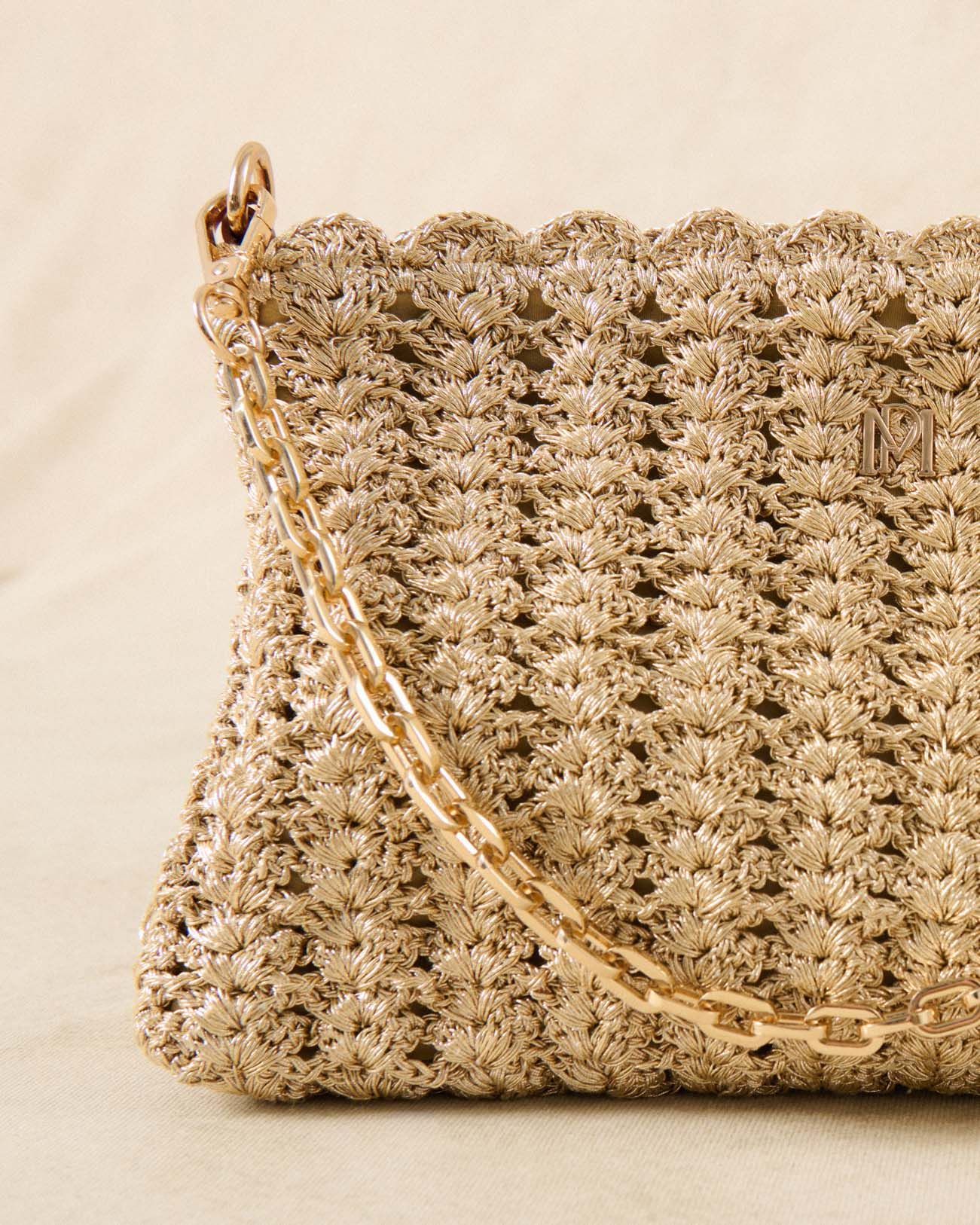 C’est LE sac en crochet doré qui s’adapte à toutes les situations. C’est la pochette qui permet d’emporter tous nos effets personnels. Pour un look tendance, on le porte en baguette avec la chaîne.