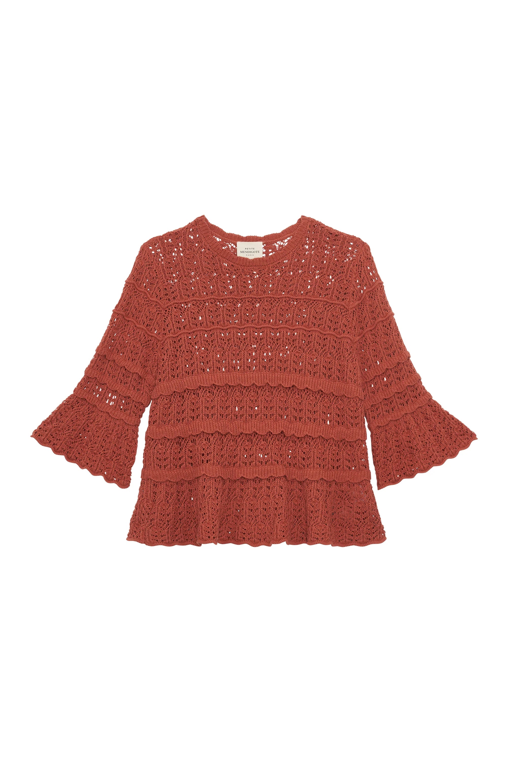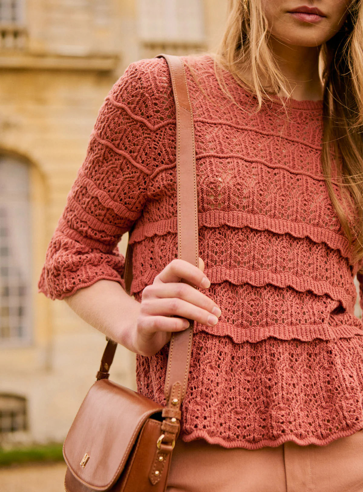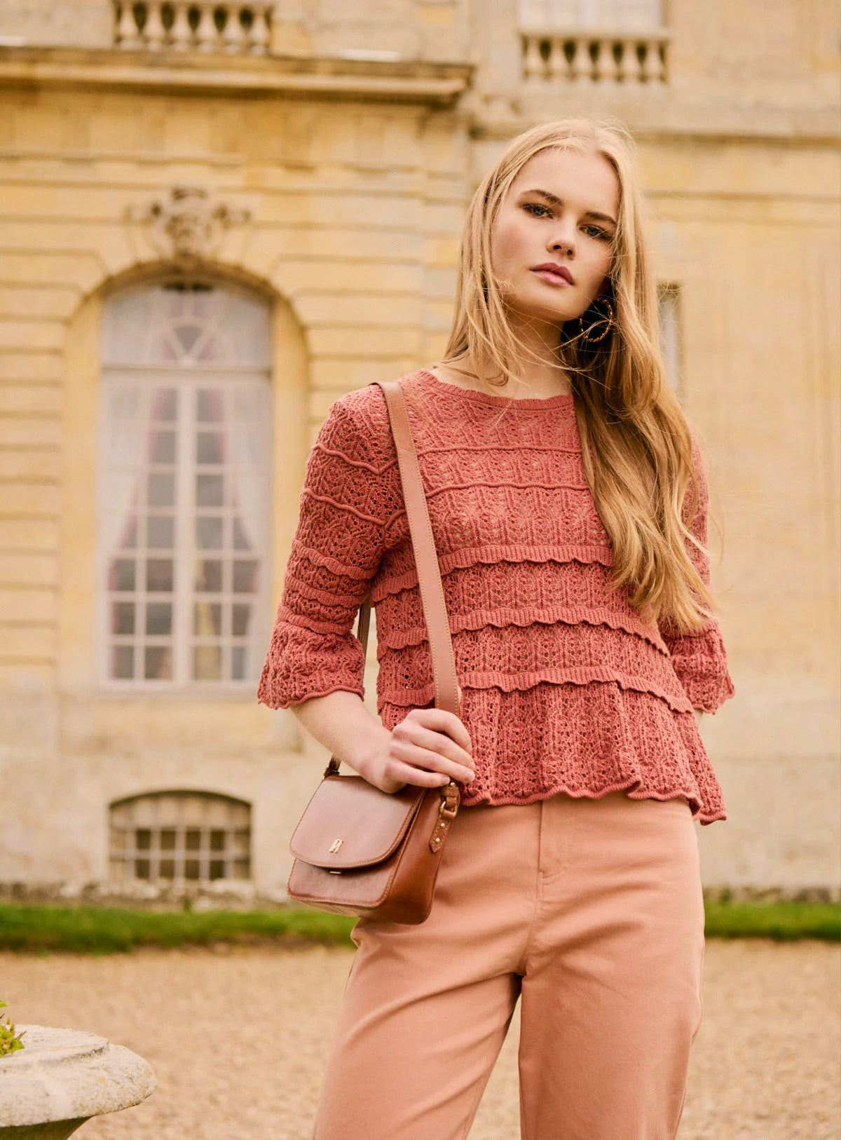 Avec son jeu de textures et ses finitions délicates, le top Melina apporte du relief et du caractère à un look simple. Une maille pleine de charme, idéale pour twister un jean ou un pantalon clair.